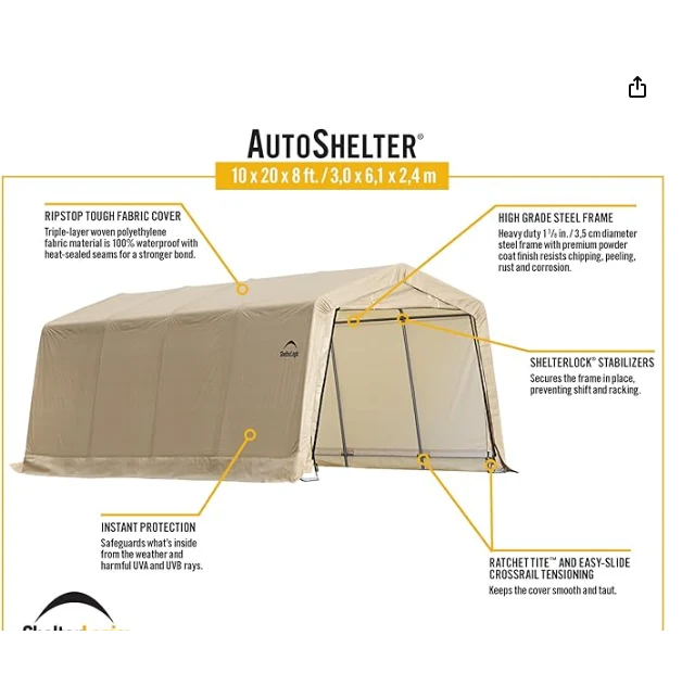 Ginawa mula sa isang all-steel metal 10 x 20 x 8-feet frame na 1-3/8 pulgada ang makapal, na nagbibigay ng lakas at katatagan