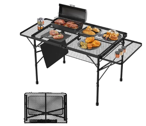 Alloy Camping Table Panlabas na natitiklop na desk, natitiklop na talahanayan na may 2 panel ng pakpak, 3x2 ft camping table na may mesh desktop, taas na nababagay na natitiklop na talahanayan ng grill na may mesh bag, portable na panlabas na mesa para sa piknik, kamping, bbq, beach