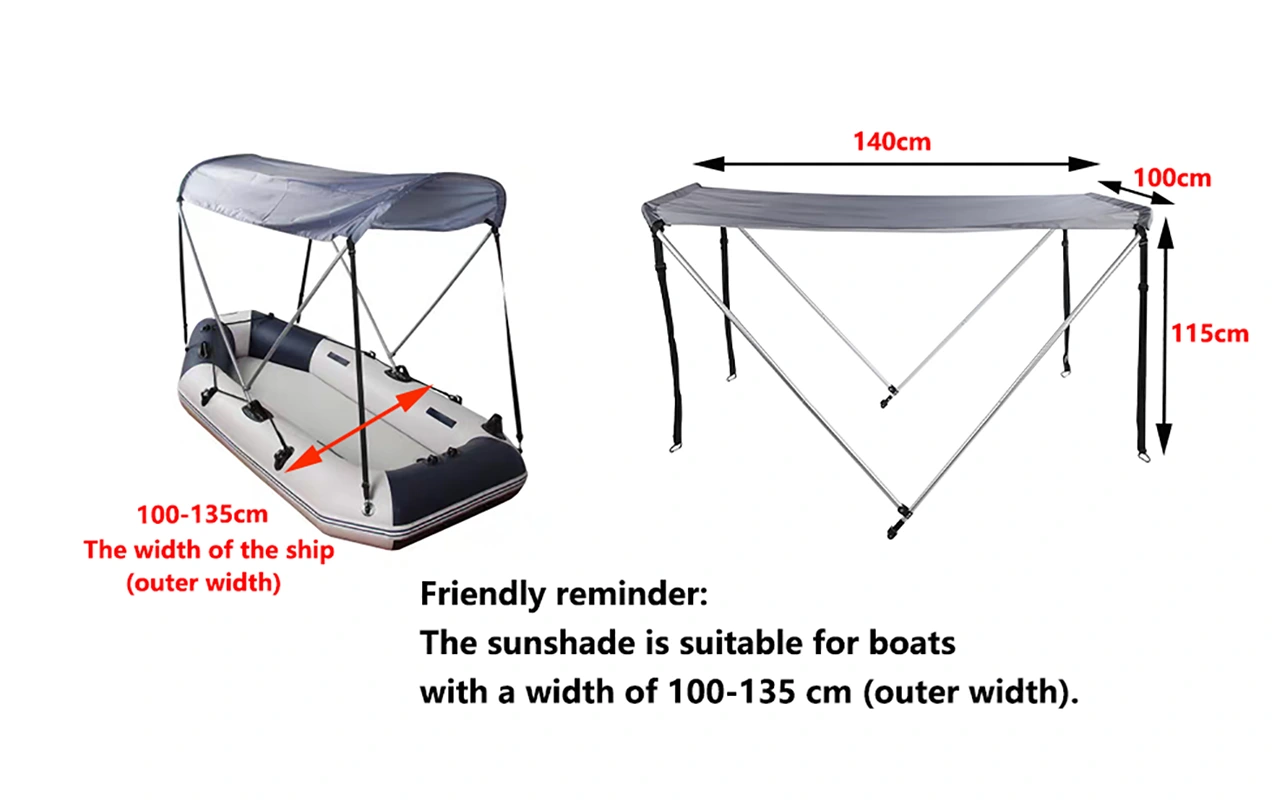 Aluminum Extensible Boat Canopy. Angkop para sa inflatable dinghy, canoe, kayak, fishing boat. Ang aming boat shade ay nagpapanatili sa iyo mula sa araw at ulan, perpekto para sa mga Runabout na bangka, V-Hull Boats, Jon Boat, Bass Boats, Inflatable Boats, Fiberglass BoatsZhejiang Jiayu Outdoor Products Co., Ltd maaaring makumpleto sa loob lamang ng ilang minuto nang walang anumang espesyal mga tool upang madali at mabilis mong mai-install ito.