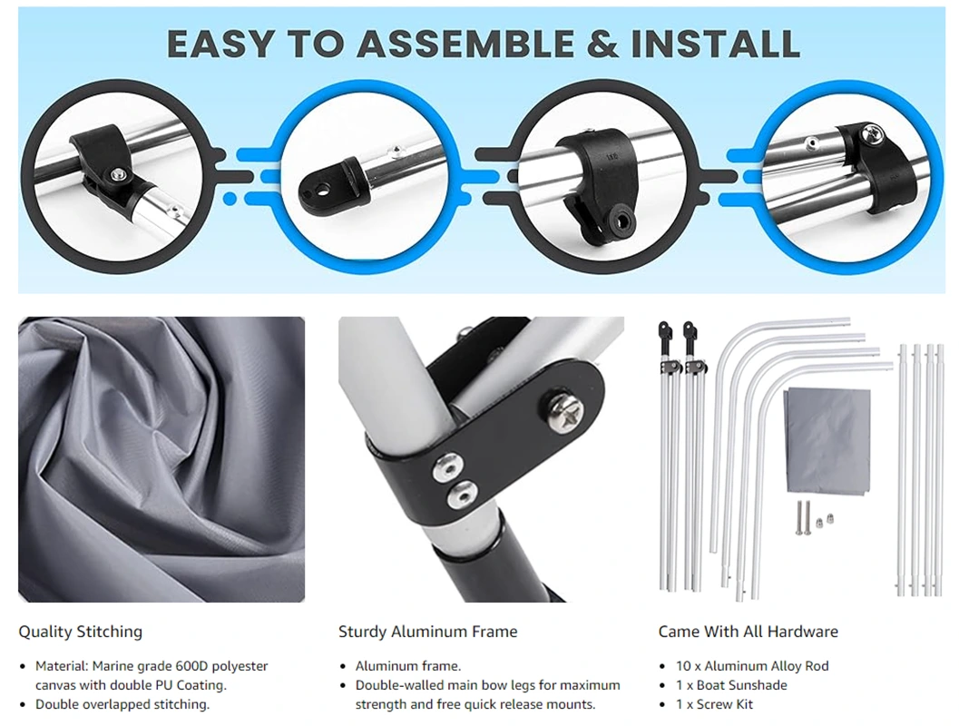 10 x Aluminum Alloy Rod 1 x Boat Sunshade 1 x Screw Kit |