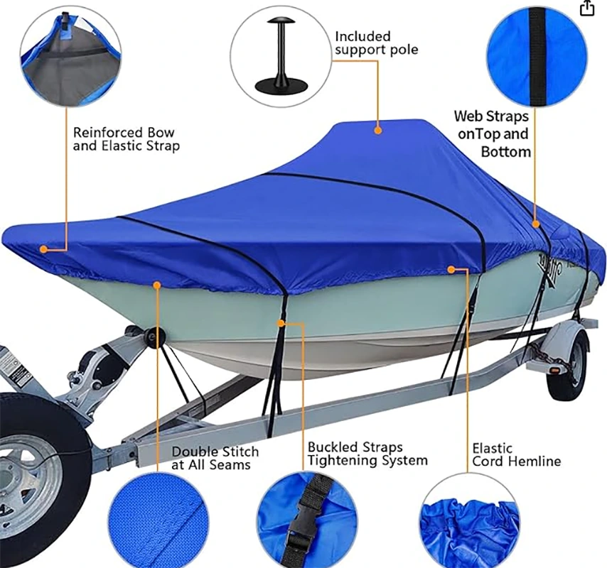 Beam Width Waterproof Boat Cover Yacht Cover umaangkop sa V-Hull center console boat na hanggang 22-24 ft ang haba, na may beam width hanggang 116 inches at windshield height hanggang 30 inches