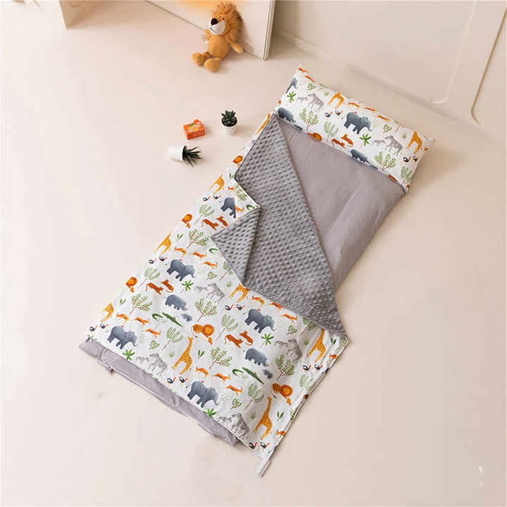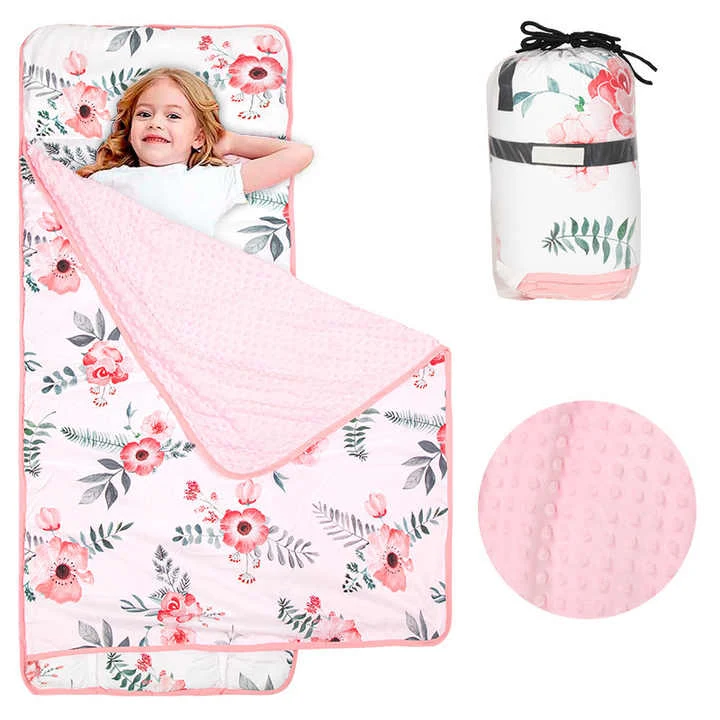 Blue Toddler Camping Nap Bag Ang disenyo ng rollup ay nagbibigay -daan sa banig na maglakbay nang madali pati na rin ang maginhawang mga strap ng pagsasara ng mga pagsasara at ang pagdadala ng hawakan.