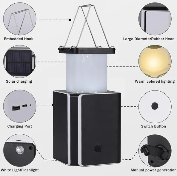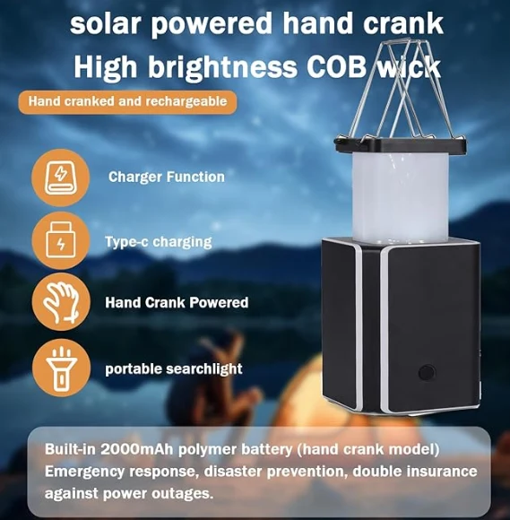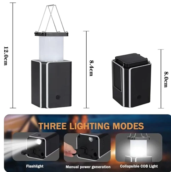 LED solar camping light, emergency camping lantern lights hand-crank power generation.Kung wala kang isang charger sa paligid at walang araw, ang generator ng hand-cranked na ito ay perpekto para sa pagsingil ng ilaw.