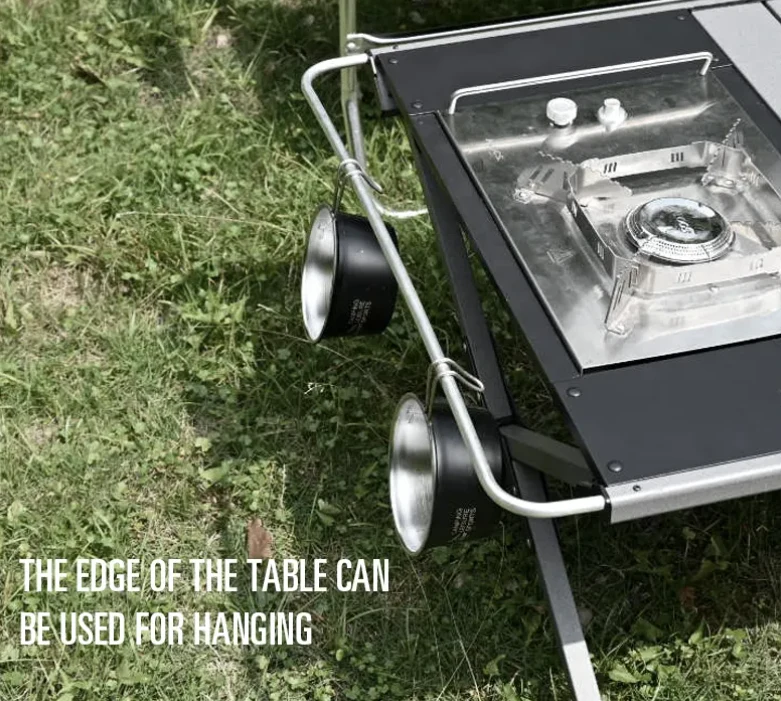 Magaan ang multifunction na natitiklop na IGT table, ayon sa iyong mga pangangailangan. Perpekto para sa kamping, barbecue, pagluluto sa labas, at marami pa. Ang gilid ng mesa ay maaaring magamit upang mag -hang ng pinggan at kagamitan