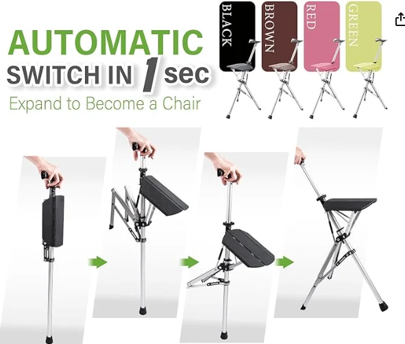 Matandang Lalaki Alpenstock Trekking Cane, pahinga at isang hiking stick para sa suporta. Ang disenyo na ito, na agad na nagko -convert ng isang hiking stick sa isang upuan na may isang snap, ay nag -aalok ng pahinga para sa pagod na mga binti at tuhod sa isang paunawa.