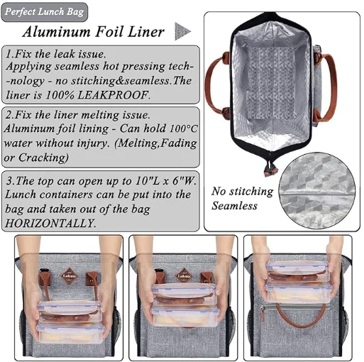Panlabas na aluminyo foil cooler bag Ang lining ay 100% tumagas patunay, madaling linisin at hindi madaling matunaw. Ang tela ng Nylon ay lumalaban sa tubig at ang tuktok na siper ay hindi tinatagusan ng tubig. Ang mga pag -andar ng hindi tinatagusan ng tubig at insulated ng tanghalian na ito ay mahusay.