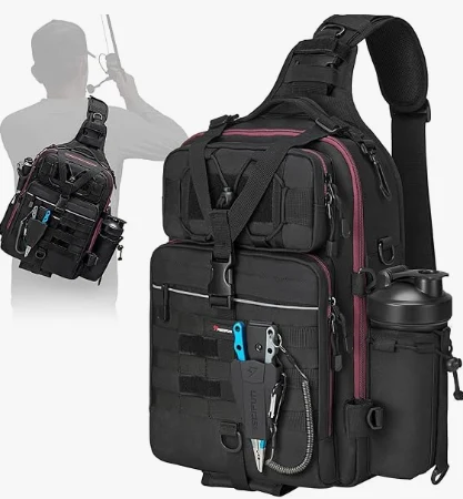 Ang mga panlabas na bag ng pangingisda, bag ng pangingisda na gawa sa high-end na kagamitan, ang aming 1000D na mataas na density ng naylon na tela ay lumalaban sa tubig at lumalaban sa abrasion. Ang aming mga Kam Buckles at SBS zips ay hindi masisira at nababanat