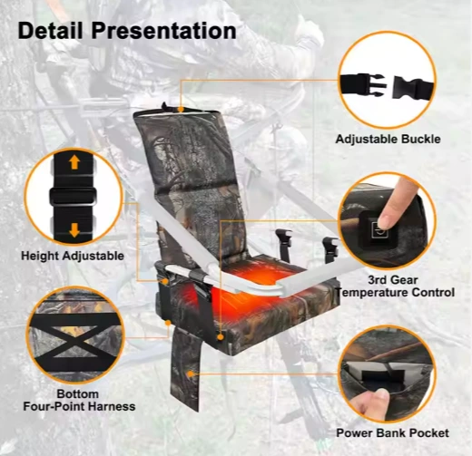 Ang tagapangasiwa ng pinainit na pangingisda, nag -aalok ng parehong lakas at ginhawa, at idinisenyo upang makatiis ng masungit na mga kondisyon sa labas habang nagbibigay ng malakas na suporta sa pag -upo, tinitiyak ang komportableng pangangaso nang maraming oras