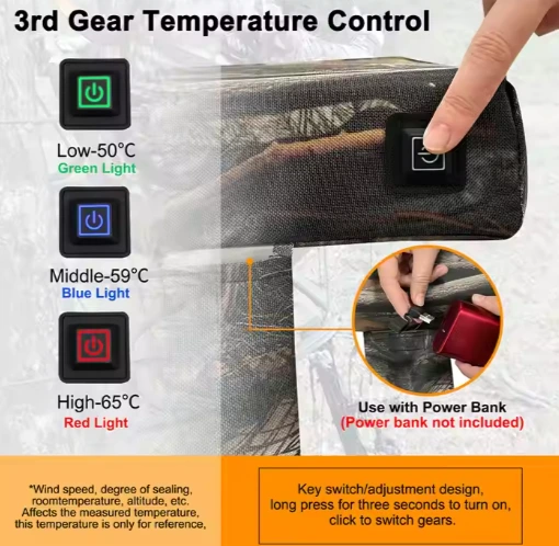 Panlabas na pangingisda na pinainit na upuan.Ang package ay hindi kasama ang power bank; Dagdag pa, ang ingay na pagbabawas ng malambot na tahimik na bula ay nagsisiguro ng kaunting mga kaguluhan, na nag -aalok ng isang makinis na karanasan sa pangangaso.Zhejiang Jiayu Outdoor Products Co, Ltd., Nag -aalok ang Portable Seat Cushion ng parehong lakas at ginhawa, at idinisenyo upang makati tinitiyak ang komportableng pangangaso nang maraming oras
