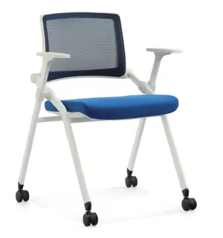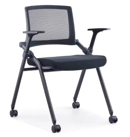 Padded Metal Folding Chair, Foldable Office Chair na may Pu Wheels at Sliding Armrest-Gergonomic Mesh Bouncing Back, Stackable Conference Room Chair, Office Guest & Reception & Meeting Chair