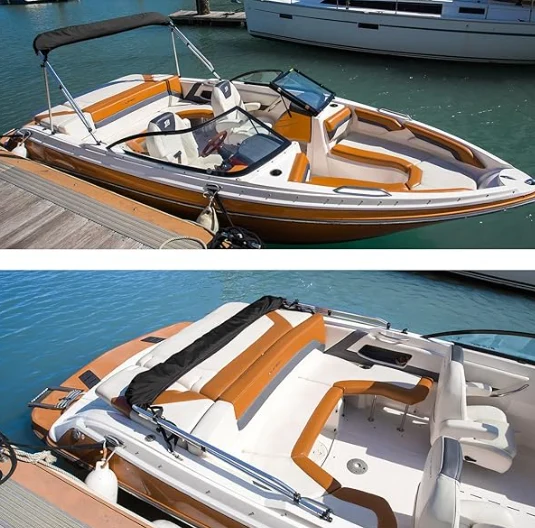 Hindi kinakalawang na bangka Bimini Top, na gawa sa Marine Grade 600D Polyester Canvas na may Double PU Coating, ang aming imbakan ng boot ay nagbibigay ng mahusay na proteksyon mula sa sikat ng araw, tubig sa dagat, ulan at alikabok.