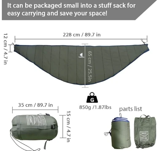 Ang Hammock quilt na ito ay maaaring maging isang compact na laki para sa backpacking, mahusay para sa kamping, paglalakad, paglalakbay