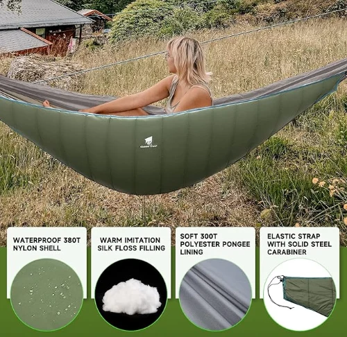 Travel Camping Hammock sa ilalim ng Quilt para sa Camping - 20d 380t Waterproof Nylon Plaid Tela na may malambot na 300 t polyester pongee lining; Imitasyon sutla floss pagpuno, balat - friendly, komportable